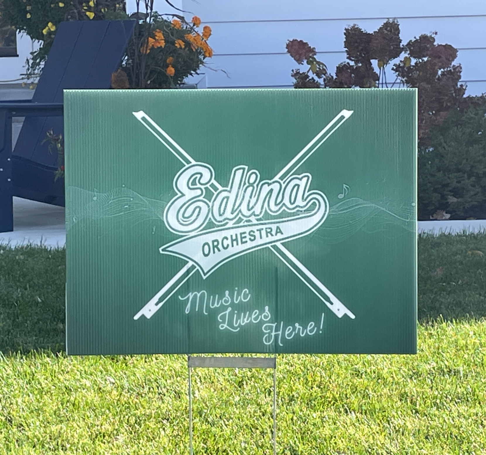 The new Edina Orchestra “Music Lives Here” yard signs are starting to pop up across Edina! Please join in our efforts to show pride and support for all of our talented Edina High School orchestra students and for the program. See the image below for details. Yard signs are $20, are durably made so that they can be used for many years, and can be ordered here.